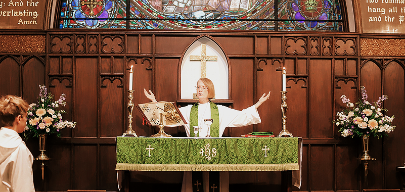 We follow an order of service, called a liturgy, from the Book of Common Prayer. The liturgy tells us when to stand and kneel (as we are able) and when to sit. This might seem odd at first, but you’ll get the hang of it.